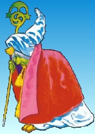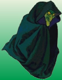 Se trata de una anciana bruja inofensiva, encorvada y descolorida, que recorre los pradros las noches de luna llena, apoyándose en un cayado de oro con regatón de plata que siempre está limpio aunque toque en pozas y barros.