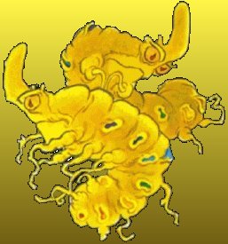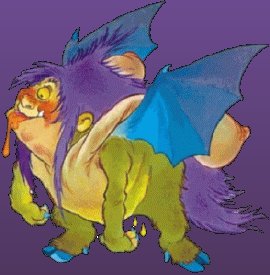 Ser achaparrado y gordo, con tres brazos, cinco ristras de dientes y un cuerno en la cabeza. Nunca harto de comer, traga cuantos bichos se ponen a su alcance, aunque sean mayores que él, pues tiene mucha fuerza.