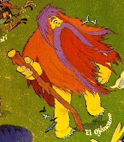 | Este gigante de fuerzas sobrehumanas se caracteriza por tener un solo ojo y largas barbas y melenas rojizas. Sólo piensa en hacer el mal, arrancando las peñas, destrozando cabañas y arbolados, cegando las fuentes... Lucha con los osos y los toros tudancos, y siempre sale victorioso de estas lides.